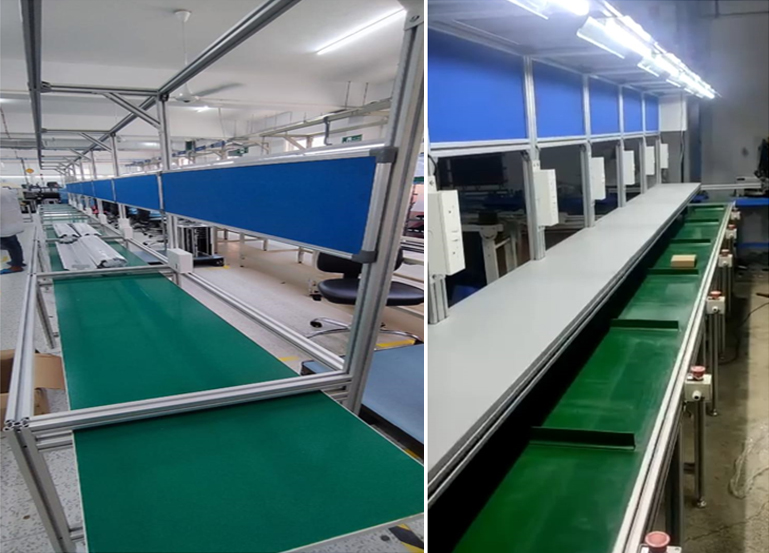 The belt can be made from materials like PVC, rubber, or modular plastic, depending on the product type and working conditions. Assembly line belt conveyors can be designed with adjustable speeds, integrated workstations, and custom dimensions to suit specific production requirements. By automating product flow, these conveyors help increase productivity, reduce manual handling, and streamline the overall assembly process.