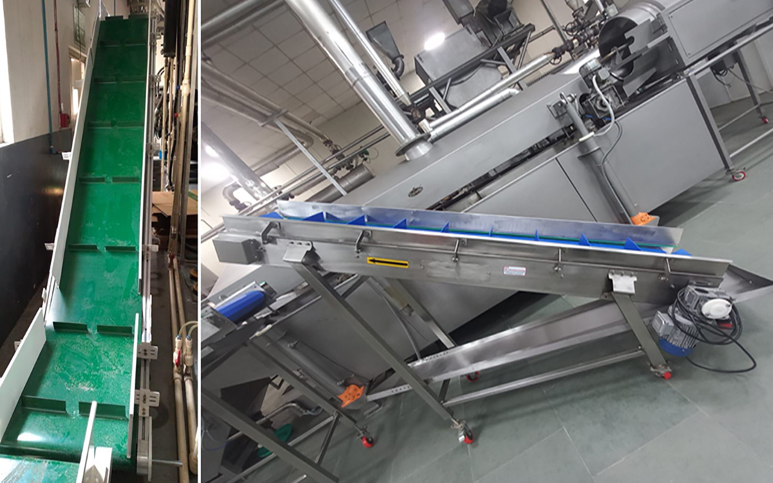 Depending on application needs, systems can be equipped with belt, modular, or flat-top chain designs, along with optional side guides, sensors, or integration with inspection and packaging lines.