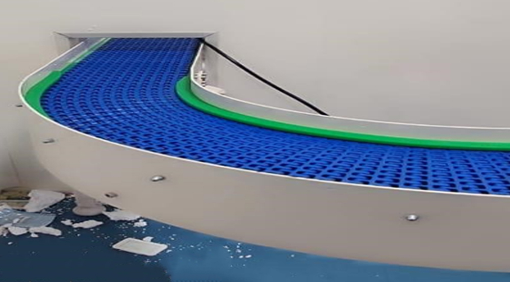 Using interlocking modular plastic belt segments, it delivers excellent durability, quiet operation, and easy maintenance. The curved design can be customized to various turning angles typically 45°, 60°, 90°, or 180° to fit tight layouts or complex process paths. The modular surface allows airflow and drainage, making it suitable for both dry and washdown environments.